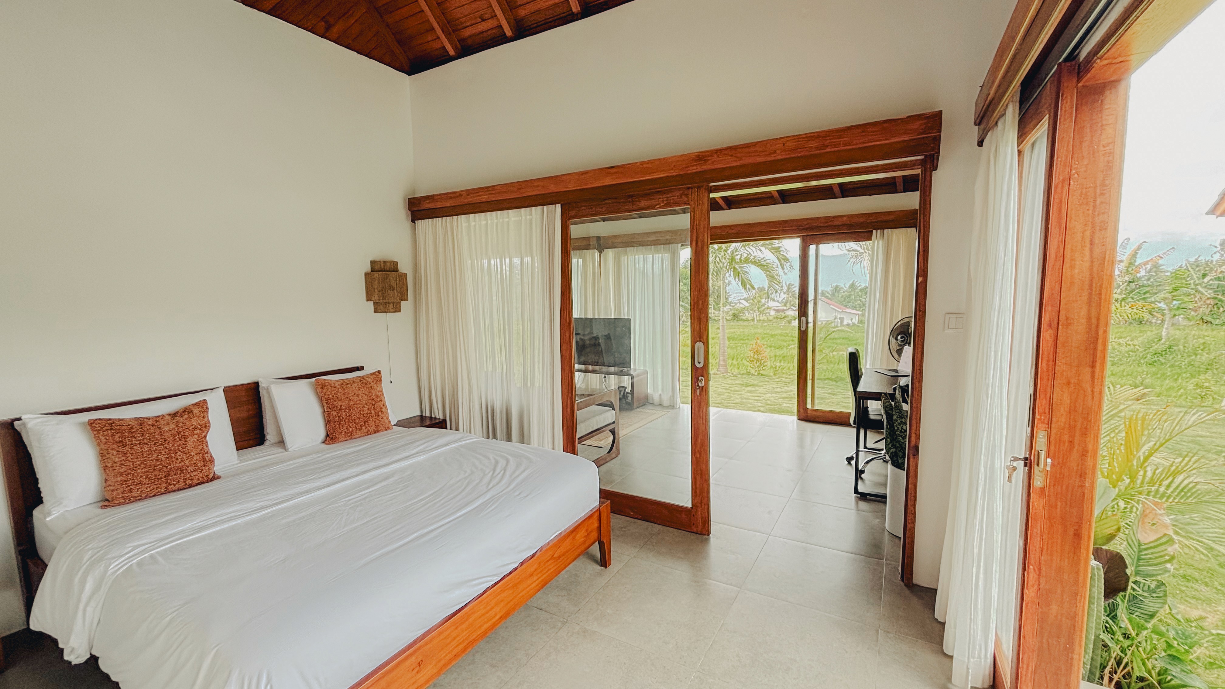 Wake up to sweeping rice field views and watch the mountains fade into sunset. With no nearby neighbors, the setting is quiet, open, and entirely private.
